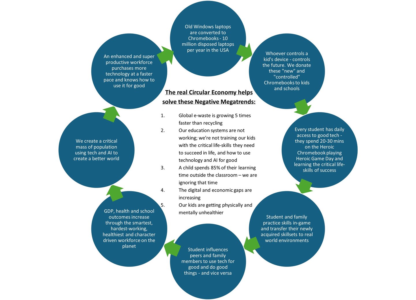 Each participating and funded student will receive a Heroic backpack with the Heroic Laptop, Heroic Journal and the Heroic Farms Game’n Grow system for the home. The laptop will be one of the Heroic Chromebook devices and will become the student’s after 3 years if they hit their learning goals each year. Students will view that laptop as their own property from the start and take care of it accordingly.